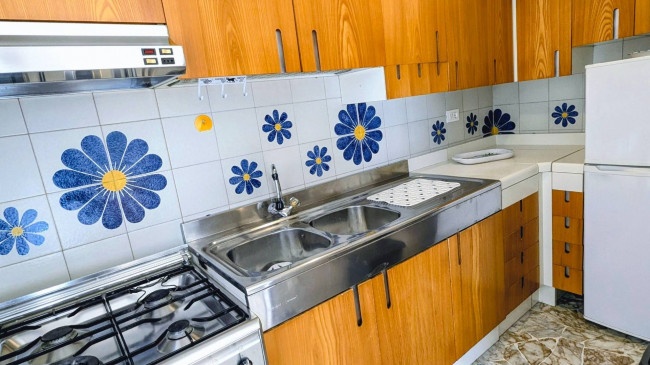 COMPOSIZ. VANI / DISTRIBUZ. POSTI LETTO: ingresso, camera matrimoniale, camera con letto ad una piazza e ½, sala con divano letto matrimoniale, cucina abitabile, bagno (vasca).