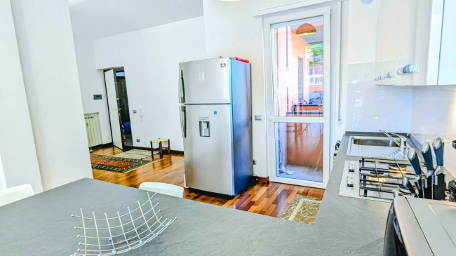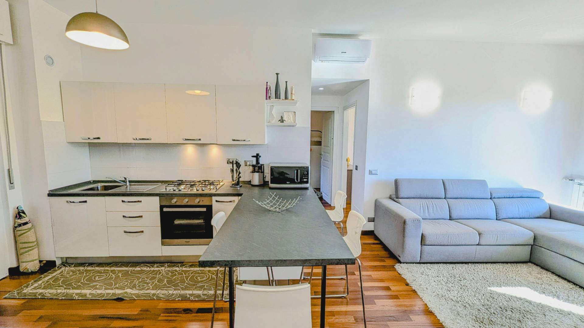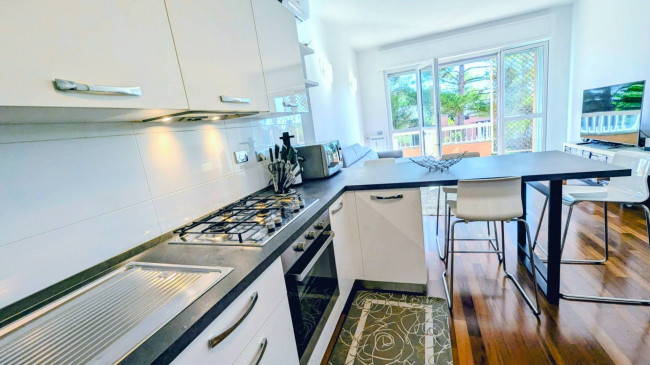 Perfetta la cucina completamente attrezzata e che dispone di una uscita su un'ulteriore balconcino di servizio.