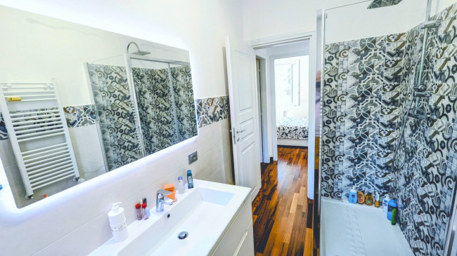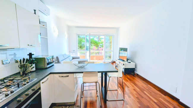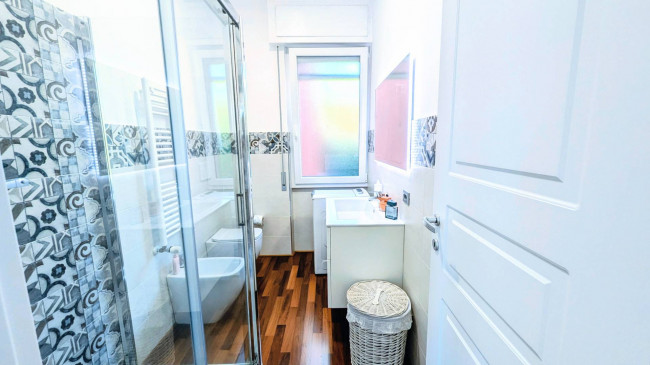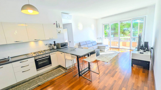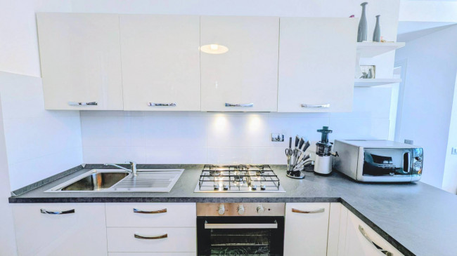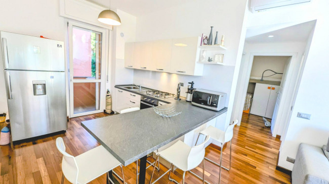 L'immobile è offerto pronto per essere abitato grazie alla recentissima ed integrale ristrutturazione ed alla possibilità di essere acquistato completamente arredato. Porta blindata, infissi in alluminio doppio vetro e vasistas, zanzariere, condizionamento, pavimentazione totalmente in parquet di iroko e l'indispensabile posto auto privato sono alcuni dei comfort di questa proposta.